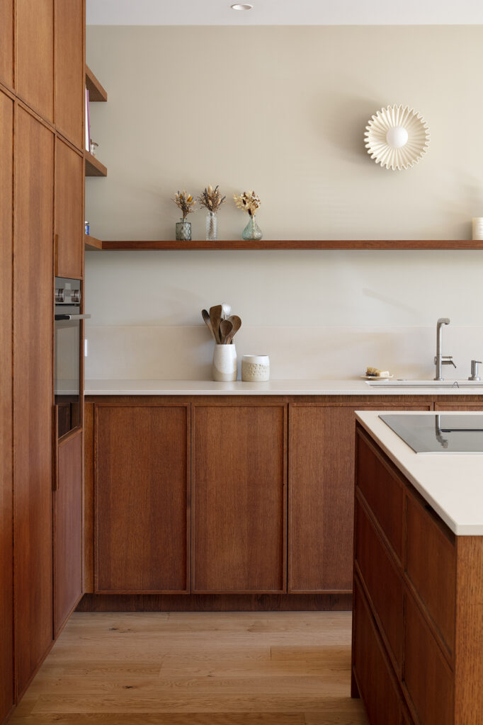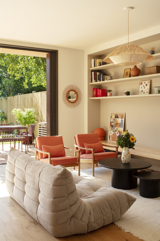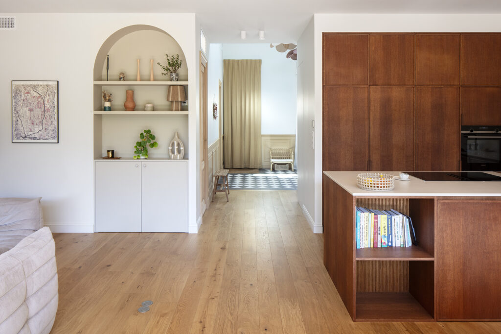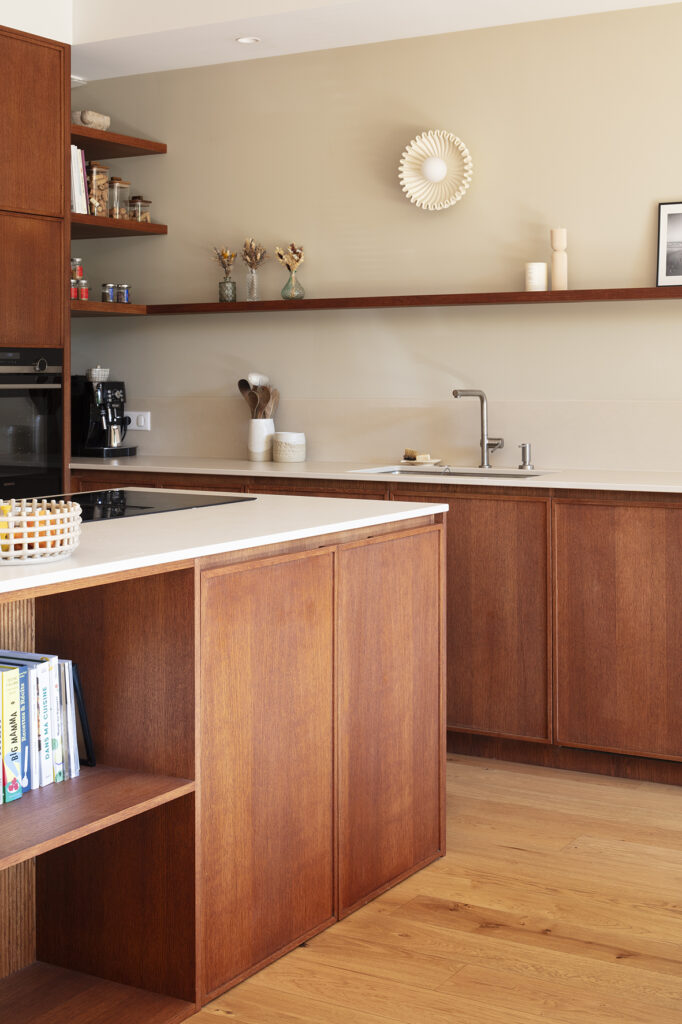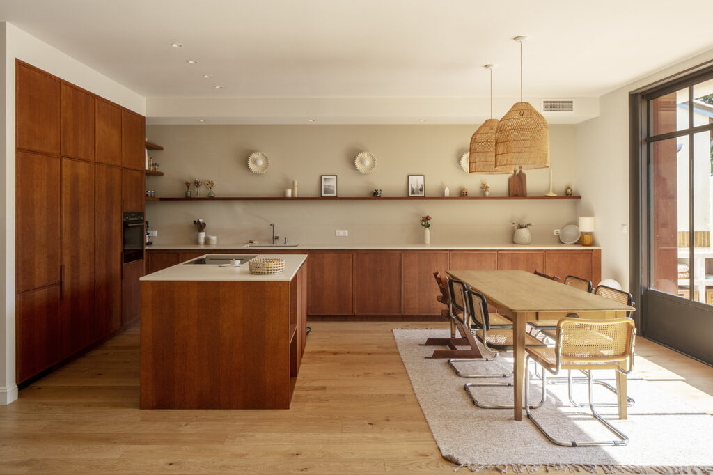 Le projet porte sur la surélévation d’une échoppe double. Dès l’entrée on est baigné dans un volume généreux avec une percée visuelle sur le jardin. Grâce à la baie à galandage dans la pièce de vie, la maison orchestre une forte relation entre intérieur et extérieur. Jeux de niveaux, lignes épurées, larges ouvertures structurent une expérience fluide ou la lumière naturelle, les matières sobres et les espaces en continuité composent une architecture moderne et agréable à vivre.